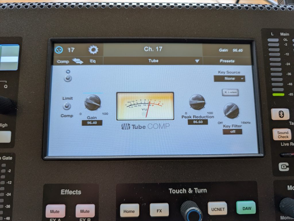 The StudioLive’s XMAX preamps offered lots of clean gain, low noise, and strong dynamic handling across the board. Kick and snare transients stayed tight and punchy, and even delicate room mic details came through without smear or compression artifacts (unless I dialed them in using the onboard effects, of course). The onboard preamps are certainly equal to (or better than) anything else I have heard in or somewhat above the price range.